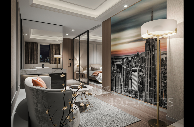 本案例由博妍裝飾設(shè)計(jì)的連鎖酒店位于上海,室內(nèi)面積約為2300平米,內(nèi)設(shè)72間現(xiàn)代客房和套房,包括3間適合長住的寬敞套房。長住套房配備獨(dú)立客廳,為全家出游的旅行者提供家外之家的完美體驗(yàn)。
